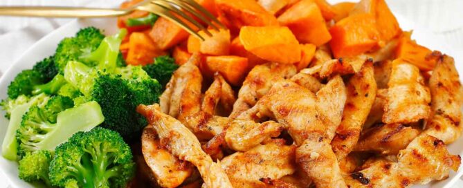 Grilled chicken with sweet potato and broccoli
